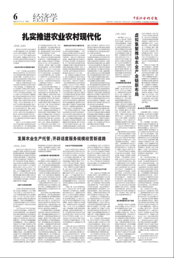 【中国社会科学报】发展农业生产托管:开辟适度服务规模经营新道路