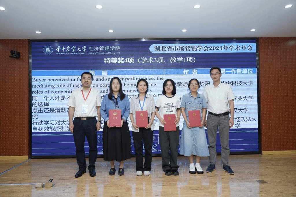 本次年会在投稿论文中评选出“星闾碧群”优秀论文奖,其中特等奖4篇,学术类特等奖论文分别被武汉大学、华中科技大学和我校学者获得,教研类特等奖论文被中南财经政法大学学者获得。另外,一等奖有12篇,二等奖31篇,三等奖9篇。学会学术委员会副主任委员、武汉大学崔楠教授和学会副会长、中南财经政法大学费显政教授分别代表学术委员会和教学委员会介绍了研究和教学论文的征稿、评审工作。学会副会长、武汉理工大学刘明菲教授代表程序委员会介绍了论文评审流程,公平公正的程序确保了论文评审工作的水平和质量。除了省内高校外,本次年会还收到了来自北京、深圳、长沙等地高校的投稿论文,反映学会影响力进一步扩大。副会长、湖北经济学院王红教授宣布获得优秀论文奖的名单,并主持颁奖仪式。